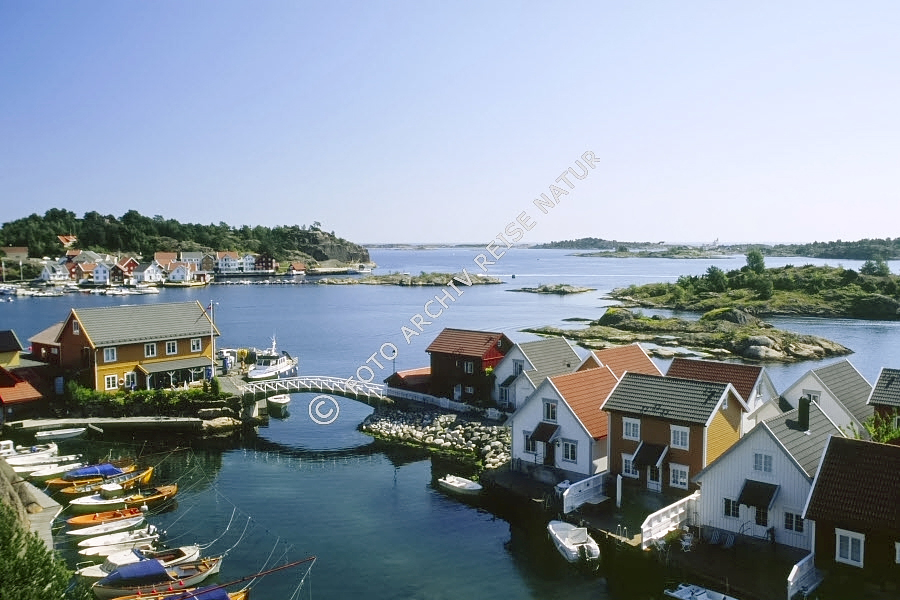 Aust-Agder, Bauwerk, Bootsanleger, Dorf, Fjord, Gebäude, Gewässer, Gjeving, Hafen, Haus, Holzhaus, Insel, Kulturlandschaft, Landschaft, Lyngørfjorden, Norwegen, Schäre,