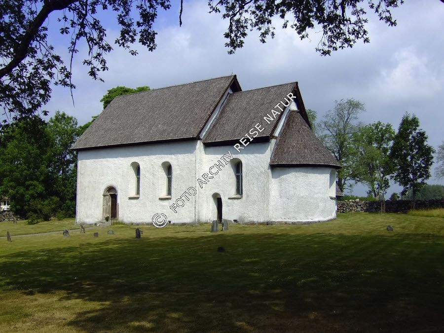 Baustil, Bauwerk, Dach, Gebäude, Gebäudeteil, Kirche, Romanik, Sakralbau, Schindeldach, Schweden, Småland, Steinkirche,