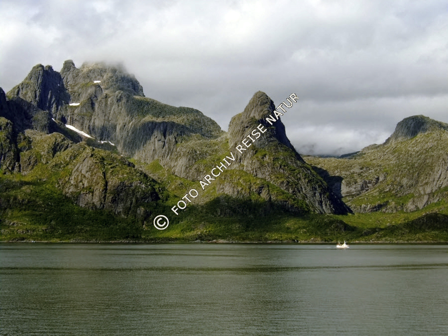 Berg, Bergkette, Digermulen, Gebirge, Gewässer, Hinnøya, Landschaft, Lofoten, Nordland, Norwegen, Raftsundet, Sund, Süd-Hinnøy,