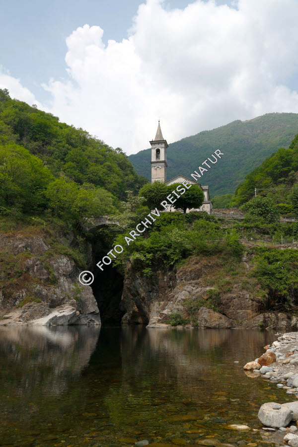 Bach, Bauwerk, Felsen, Felsspalte, Flussgeröll, Gebäude, Geröll, Gewässer, Italien, Kirche, Landschaft, Material, Piemont, Sakralbau, Stein, Tal, Valle Cannobina, Sant' Anna, Wald,
