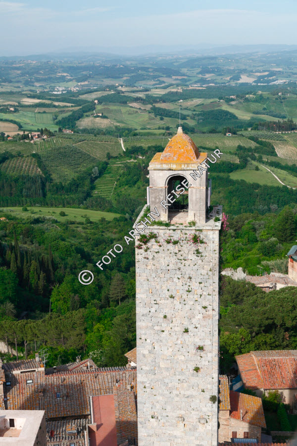 Altstadt, Bauwerk, Feld, Geschlechterturm, Hügel, Hügelland, Italien, Kulturlandschaft, Landschaft, San Gimignano, Stadt, Toskana, Turm,