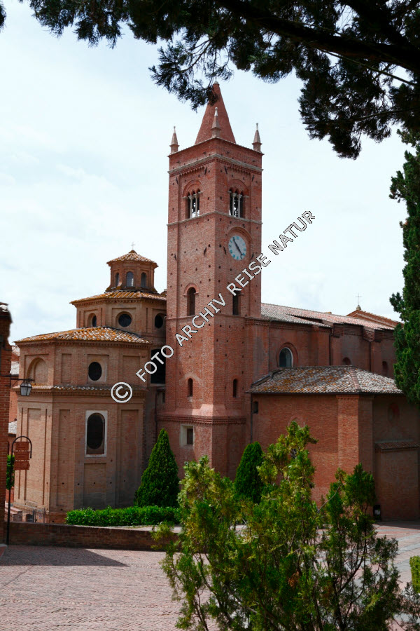 Abtei, Kloster, Backstein, Bauwerk, Crete, Gebäude, Italien, Klosterkirche, Material, Monte Oliveto, Sakralbau, Stein, Toskana, Turm,