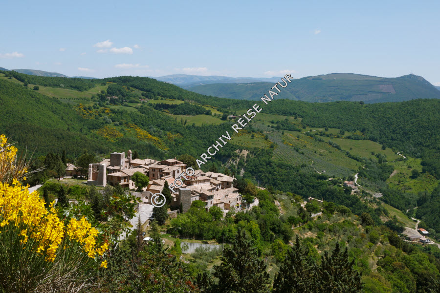 Blick auf das Bergdorf Collepino am monte Subasio