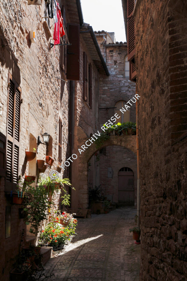 Altstadt, Bauwerk, Gasse, Gebäude, Haus, Italien, Kulturlandschaft, Natursteinhaus, Spello, Stadt, Straße, Umbrien, Verkehrsweg,