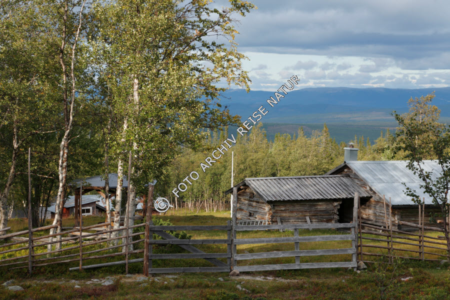 Baum, Bauwerk, Bergdorf, Birke, Betula, Birkengewächs, Dorf, Flora, Gebäude, Härjedalen, Hütte, Kulturlandschaft, Nationalpark, Ort, Schweden, Sennerei, Sånfjället,