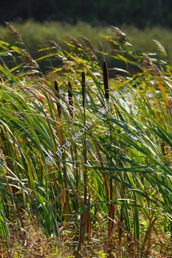 Breitblättriger Rohrkolben, Typha latifolia, Flachwasserzone, Flora, Gewässer, Gras, Hornborgasjön, Landschaft, Naturschutzgebiet, Ort, Rohrkolbengewächs, See, Västra Götlands län,