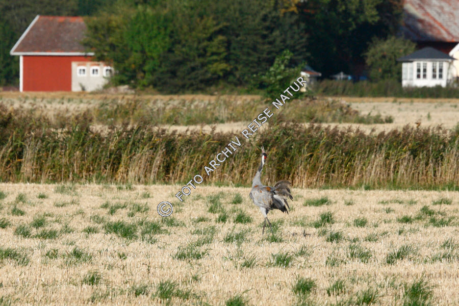 Fauna, Feld, Fäholmen, Hornborgasjön, Kranich, Grus grus, Kranichvogel, Gruiformes, Kulturlandschaft, Naturschutzgebiet, Ort, Schweden, Stoppelfeld, Vogel, Västra Götlands län,