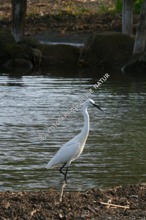 Farbe, Fauna, Gewässer, Gradoli, Italien, Lago di Bolsena, Landschaft, Latium, Reiher, See, Seidenreiher, Egretta garzetta, Vogel, weiß,