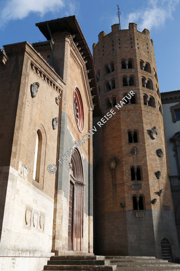 Bauwerk, Fenster, Fensterrose, Gebäude, Gebäudeteil, Italien, Kirche, Kirchturm, Material, Naturstein, Orvieto, Portal, Sakralbau, Stein, Stufenportal, Tuff, Turm, Umbrien,