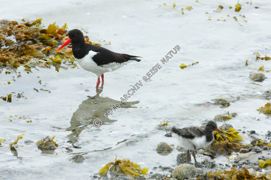 Austernfischer mit Jungvogel am Grunnførfjorden