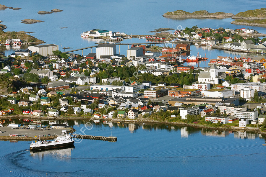 Austvågøya, Autofähre, Bauwerk, Berg, Fahrzeug, Fjord, Fähre, Gebäude, Gewässer, Hafen, Haus, Holzhaus, Insel, Kirche, Kulturlandschaft, Landschaft, Lofoten, Mehrfamilienwohnhaus, Nordland, Norwegen, Sakralbau, Schiffswerft, Schäre, Stadt, Steinhaus, Steinkirche, Svolvær, Tjeldbergtinden, Verkehrsmittel, Vestfjorden, Wasserfahrzeug,