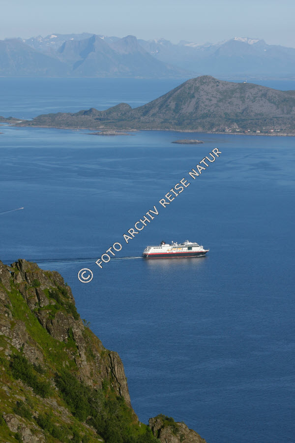Hurtigrutenschiff / Weiterfahrt von Svolvær Richtung Stamsund