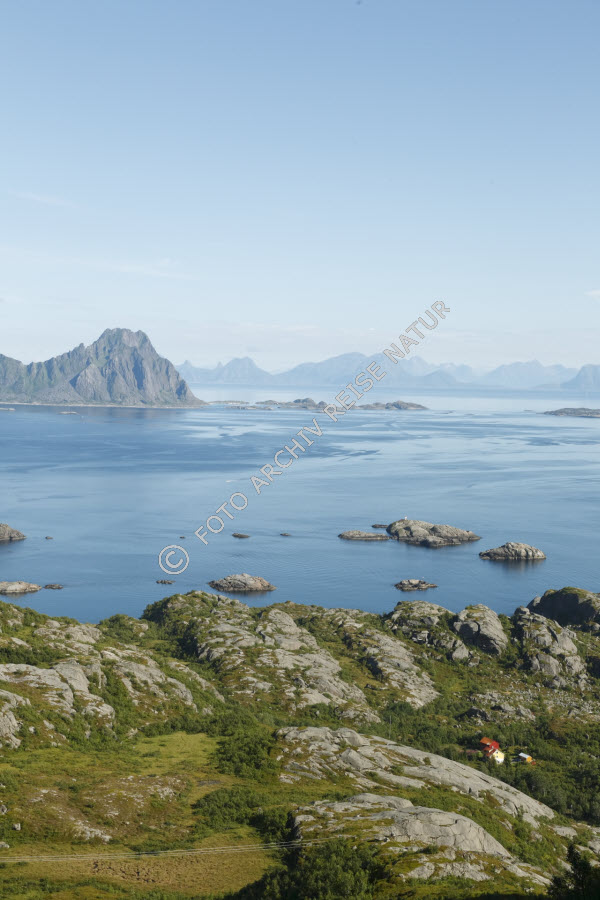 Austvågøya, Berg, Felsen, Fjord, Gewässer, Insel, Landschaft, Litlmolla, Lofoten, Material, Nordland, Norwegen, Schäre, Stein, Svolvær, Tjeldbergtinden, Vestfjorden,