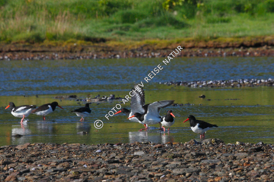 Austernfischer, Haematopus ostralegus, Bodden, Fauna, Felsen, Flora, Geröll, Gewässer, Gras, Knutstad, Landschaft, Lofoten, Material, Nordland, Norwegen, Stein, Vestvågøy, Vogel, Watvogel,