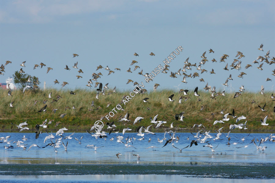 Deutschland, Fauna, Gewässer, Grüner Brink, Insel Fehmarn, Kiebitz, Vanellus vanellus, Lachmöwe, Larus ridibundus, Landschaft, Möwen, Naturschutzgebiet, Ort, Regenpfeifer, Schleswig-Holstein, See, Strandsee, Vogel, Watvogel,