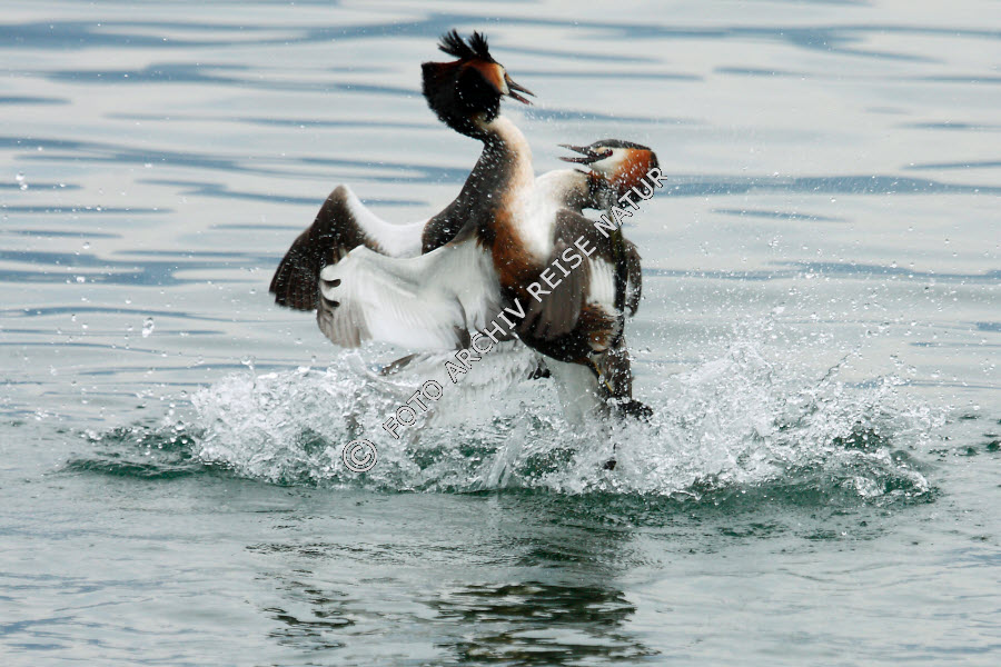 Kämpfende Haubentauchermännchen