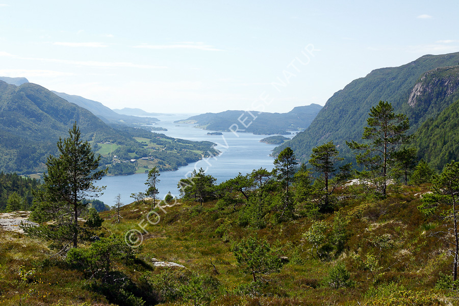 Berg, Berghang, Fjell, Fjord, Gebirge, Gewässer, Kulturlandschaft, Landschaft, Møre og Romsdal, Norwegen, Wald, Wiese, Årvåg, Årvågsfjorden,