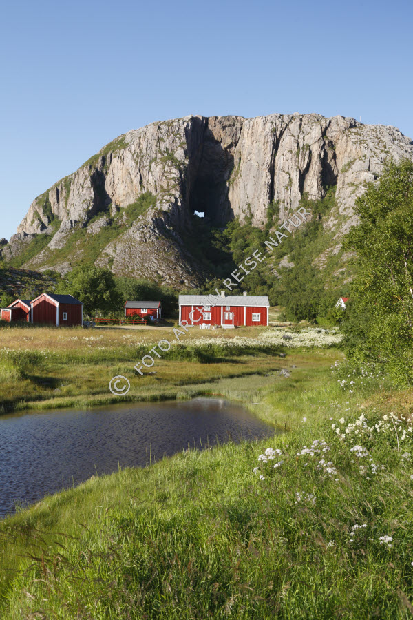 Bach, Bauernhof, Baum, Bauwerk, Berg, Birke, Betula, Birkengewächs, Brønnøysund, Flora, Gebäude, Gewässer, Hof, Kulturlandschaft, Landschaft, Nordland, Norwegen, Teich, Torghatten, Wiese,