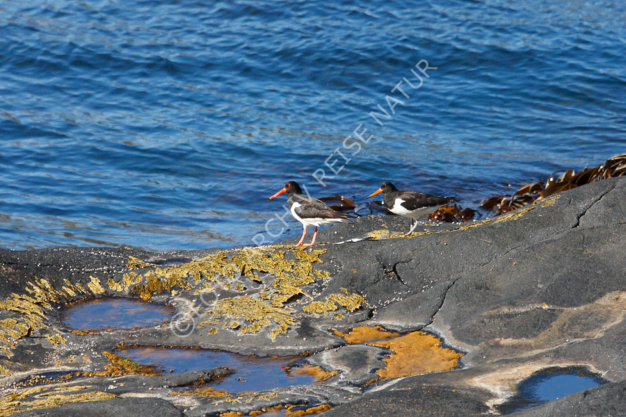 Austernfischer mit Jungtier am Nordmeer vor Laupsvika