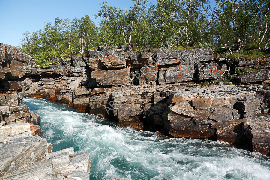 Abisko, Abiskojåkka, Baum, Birke, Betula, Birkengewächs, Felsen, Fjellbirke, Betula pubescens, Flora, Fluss, Gewässer, Landschaft, Lappland, Material, Nationalpark, Norrbottens Län, Ort, Schlucht, Schweden, Stein, Stromschnelle, Strudel, Tal, Wasser,