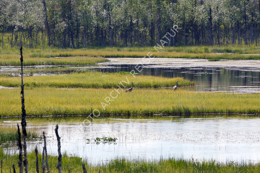 Arjeplog, Fauna, Flora, Gewässer, Gras, Kranich, Grus grus, Kranichvogel, Gruiformes, Lamburträsk Naturreservat, Landschaft, Naturschutzgebiet, Norrbottens Län, Ort, Schweden, See, Vogel, Wald,