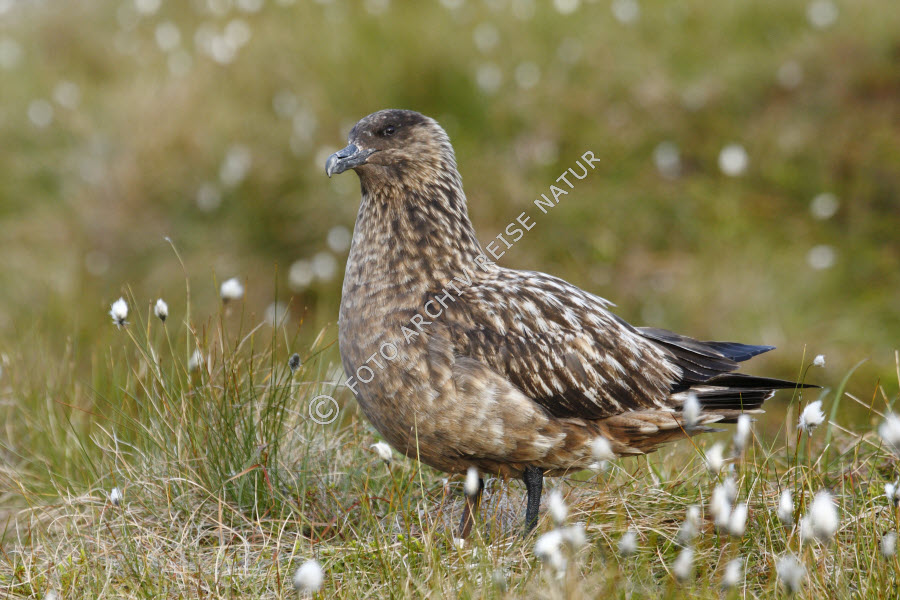 Fauna, Flora, Gras, Große Raubmöwe, Stercorarius skua, Insel, Insel Runde, Landschaft, Møre og Romsdal, Norwegen, Raubmöwen, Sauergrasgewächs, Scheuchzers Wollgras, Eriophorum scheuchzeri, Vogel,