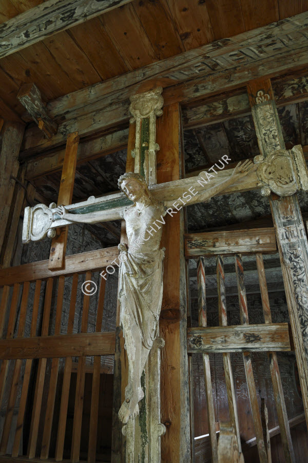 Bauwerk, Deckengemälde, Gebäude, Gegenstand, Gemälde, Holzkirche, Holzschnitzkunst, Holzskulptur, Kirche, Kreuz, Kruzifix, Kultur, Kunst, Kunsthandwerk, Malerei, Møre og Romsdal, Norwegen, Rødven, Sakralbau, Skulptur, Stabkirche, Åndalsnes, Rauma,