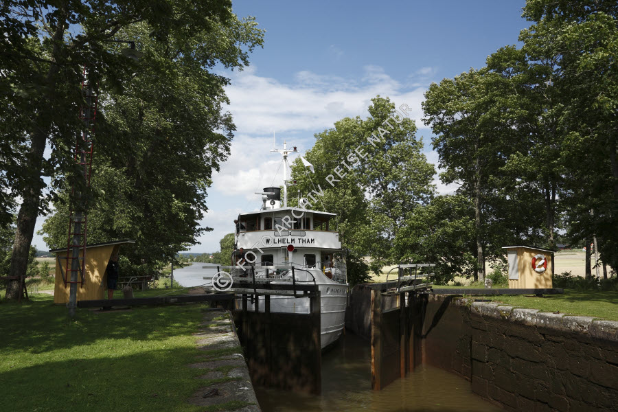 Historisches Fahrgastschiff " Wilhem Tham " in der Götakanalschleuse bei Riksberg