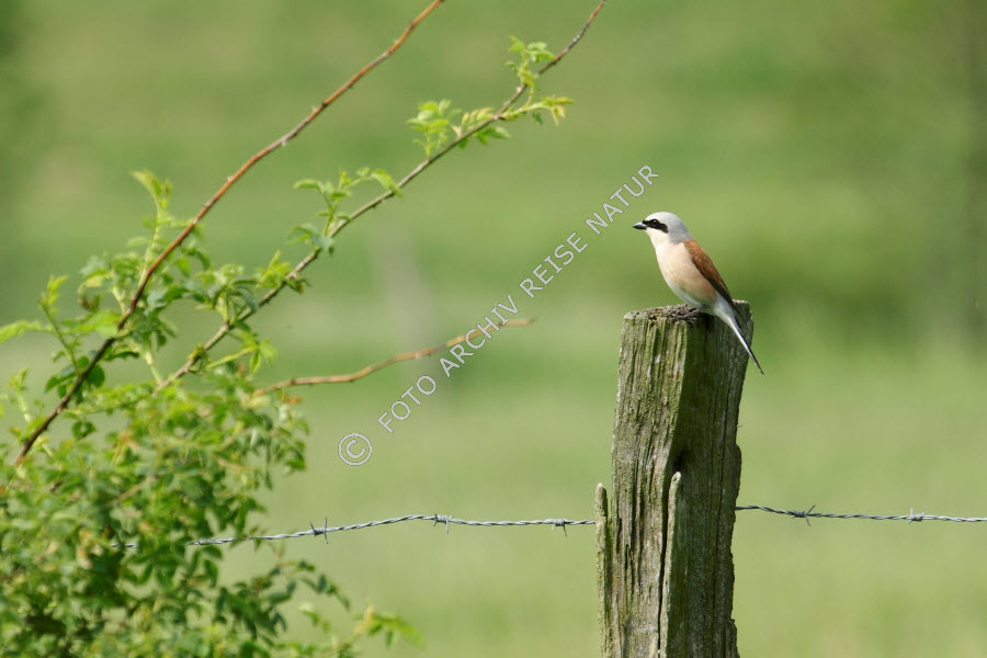 Bauwerk, Deutschland, Einfriedung, Fauna, Kulturlandschaft, Neuntöter, Lanius collurio, Rühstäd, Sachsen-Anhalt, Vogel, Weide, Würger, Zaun, Zaunpfahl,
