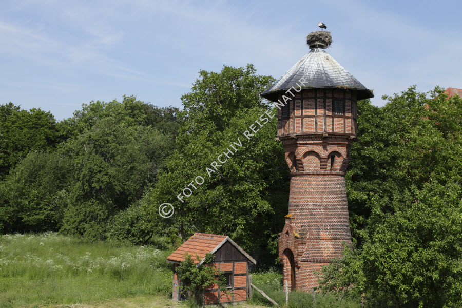 Alter Wasserturm mit Storchennest in R?hst?d