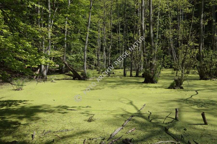Auwald, Buchenwald, Deutschland, Farbe, Flora, Gewässer, Holz, Jasmund, Kleine Wasserlinse, Lemna minor, Landschaft, Laubwald, Material, Mecklenburg-Vorpommern, Nationalpark, Ort, Rügen, Sassnitz, Teich, Totholz, Treibholz, Wald, Wasserlinsengewächs, grün,