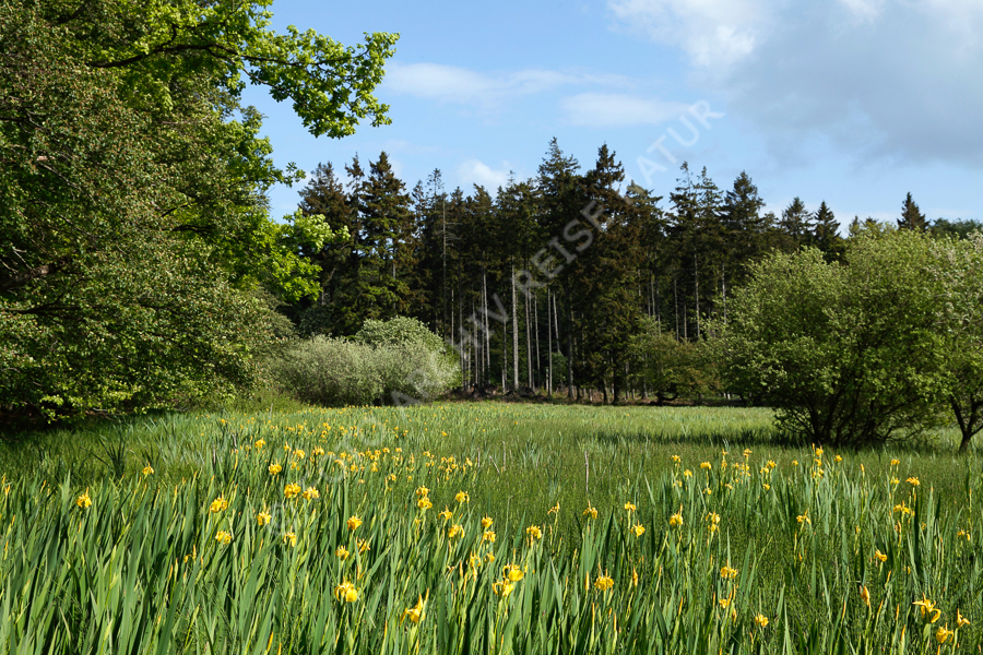 Aue, Baum, Blume, Blüte, Deutschland, Feuchtgebiet, Fichtenwald, Flora, Jasmund, Landschaft, Mecklenburg-Vorpommern, Nadelwald, Nationalpark, Ort, Pflanzenteil, Rügen, Sassnitz, Strauch, Sumpfwiese, Wald, Wildpflanze,