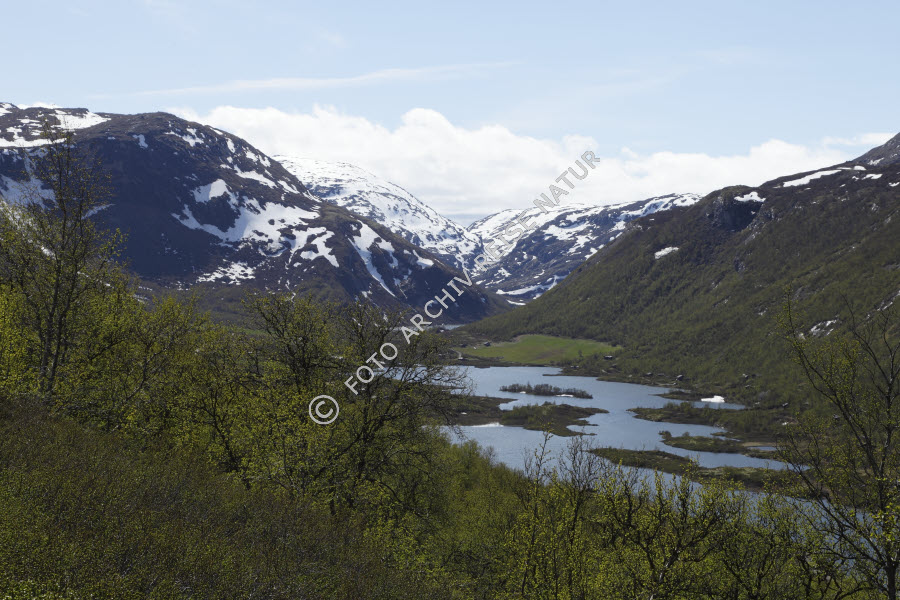 Bauwerk, Bergkette, Bergsee, Bøverkinnhalsen, Gebirge, Gebirgsstraße, Gewässer, Hochtal, Jotunheimen, Landschaft, Norwegen, Oppland, See, Sognefjellet, Sognefjellsvegen, Straße, Tal, Verkehrsweg,