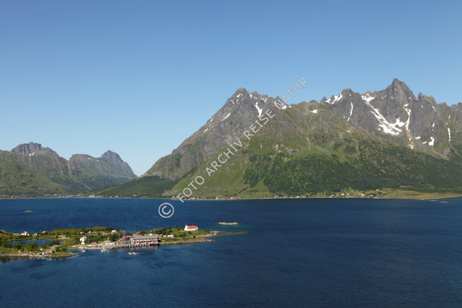 Austnesfjorden, Austvågøya, Berg, Bergkette, Fjord, Gebirge, Gewässer, Gipfel, Higravtindan, Landschaft, Lofoten, Nordland, Norwegen, Sildpollen, Sildpollneset, Vestpollen,