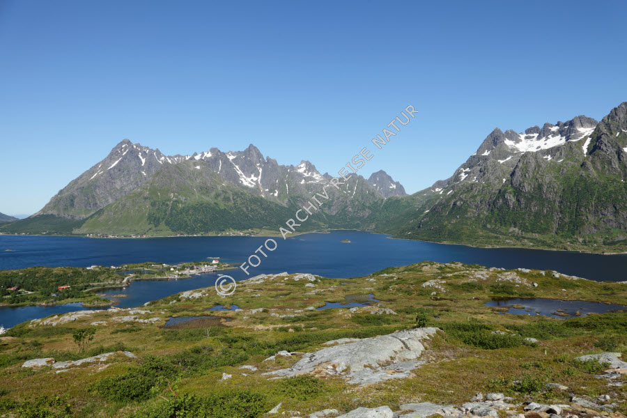 Austnesfjorden, Austvågøya, Berg, Berghang, Bergkette, Bergrücken, Fjord, Gebirge, Gewässer, Landschaft, Lofoten, Nordland, Norwegen, Sildpollen, Sildpollneset,