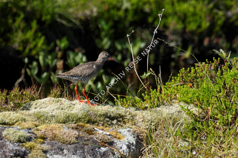 Austvågøya, Fauna, Felsbrocken, Felsen, Lofoten, Material, Nordland, Norwegen, Rotschenkel, Tringa totanus, Sandsletta, Schnepfenvogel, Stein, Vatnfjord, Vogel, Watvogel,