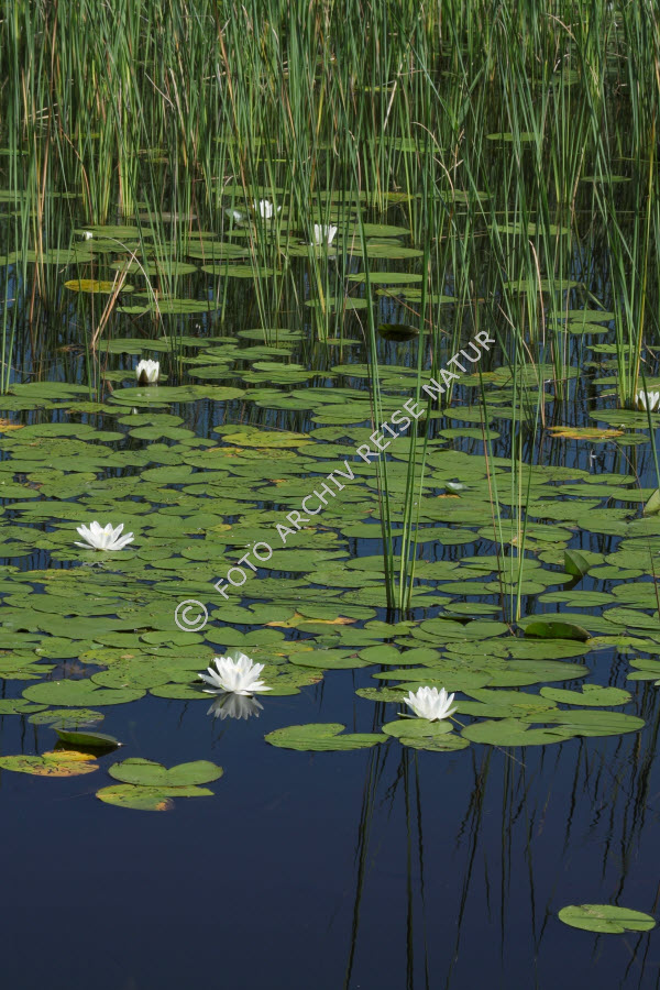Farbe, Flora, Gewässer, Gras, Landschaft, Schilfrohr , Phragmites australis, See, Seerosengewächs, Süßgras, Weiße Seerose, Nymphaea alba, blau, grün, weiß, Åsnen,