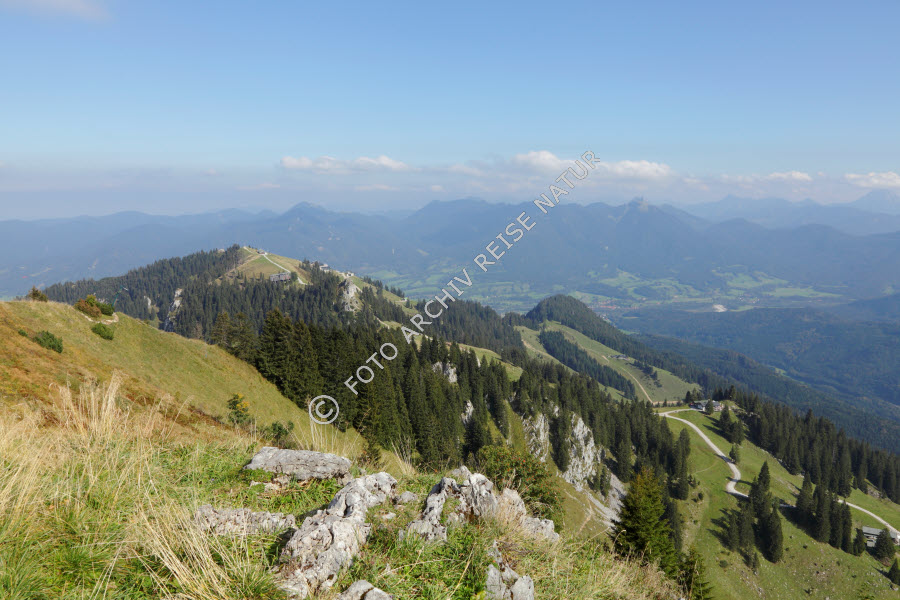 Alm, Bayern, Berg, Berghang, Bergkette, Bergrücken, Bergspitze, Bergwald, Brauneck, Deutschland, Felsbrocken, Felsen, Felsnadel, Fichtenwald, Gebirge, Gipfel, Grat, Kulturlandschaft, Landschaft, Lengries, Material, Nadelwald, Stein, Wald, Weide,