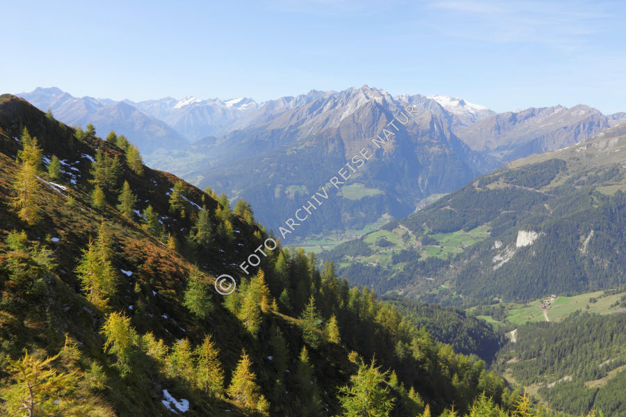 Baum, Berg, Bergkette, Bergwald, Cimaross, Flora, Gebirge, Kals am Großglockner, Kieferngewächs, Landschaft, Lärche, Larix, Nadelwald, Tirol, Venediger Gruppe, Wald, Österreich,
