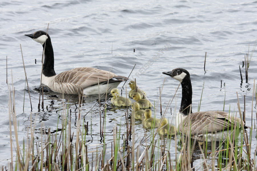 Entenvögel, Fauna, Flora, Gewässer, Gras, Jungtier, Jungvogel, Kanadagans, Branta canadensis, Küken, Landschaft, Schilfgürtel, Schilfrohr , Phragmites australis, See, Süßgras, Ufer, Vogel, Åsnen,