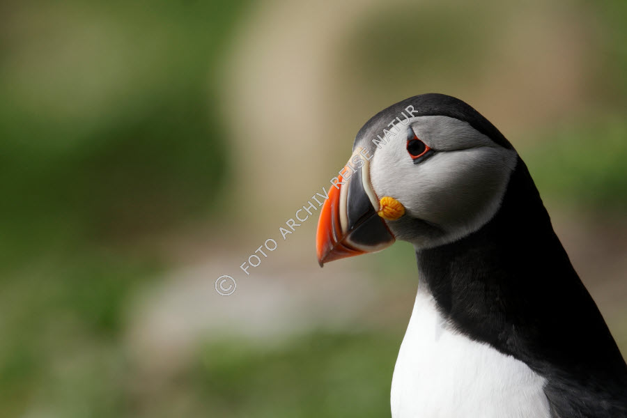 Alkenvögel, Barentssee, Fauna, Felsen, Finnmark, Gewässer, Hornøya, Insel, Landschaft, Lappland, Material, Meer, Norwegen, Papageitaucher, Fratercula arctica, Stein, Varanger, Vardø, Vogel, Vogelfelsen, Vogelinsel,