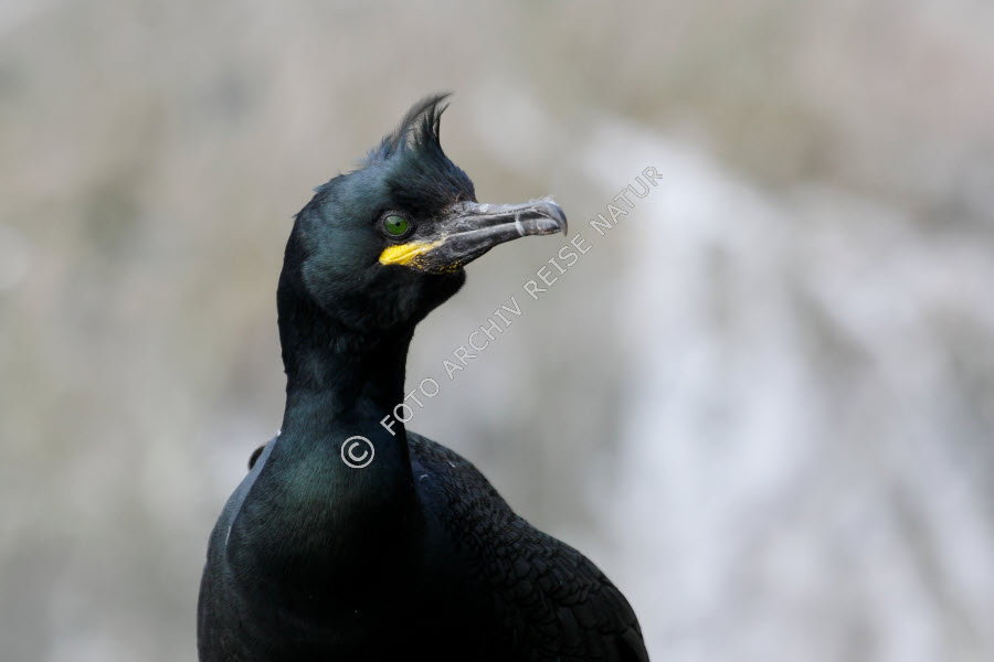 Barentssee, Fauna, Felsen, Finnmark, Gefieder, Gewässer, Hornøya, Insel, Kormorane, Krähenscharbe, Phalacrocorax aristotelis, Landschaft, Lappland, Material, Meer, Norwegen, Prachtkleid, Stein, Varanger, Vardø, Vogel, Vogelfelsen, Vogelinsel,