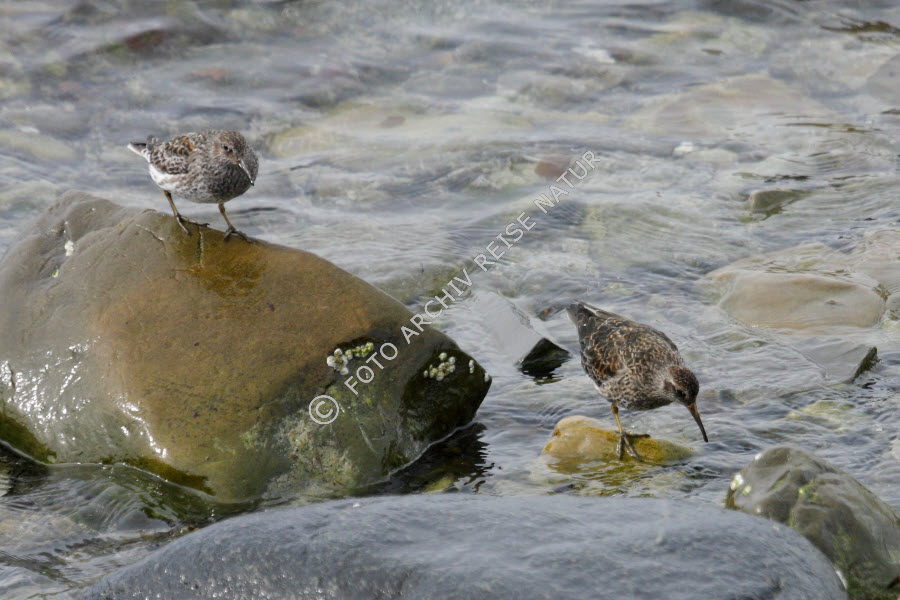 Barentssee, Ekkerøy, Fauna, Finnmark, Gewässer, Landschaft, Lappland, Meer, Meerstrandläufer, Calidris maritima, Norwegen, Schnepfenvogel, Varanger, Vogel, Watvogel,