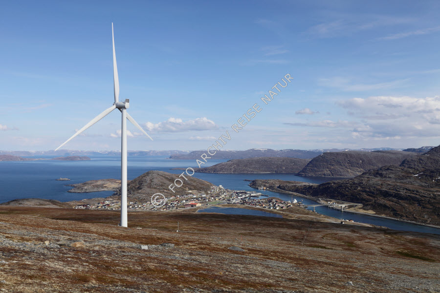 Barentssee, Bauwerk, Finnmark, Gewässer, Havøysund, Landschaft, Lappland, Meer, Norwegen, Windrad,