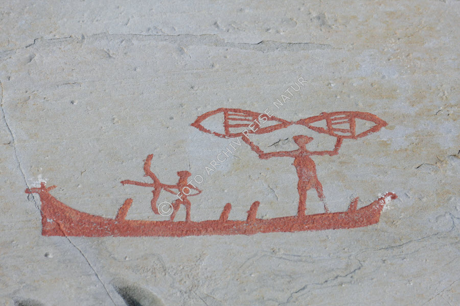 Felsritzung in Alta, Boot mit Bogenschütze und Fischer