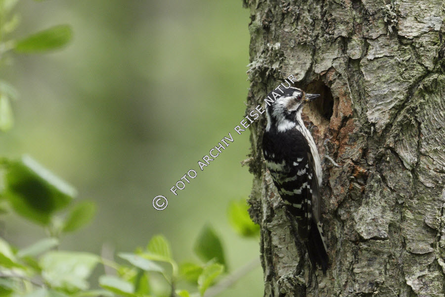 Baum, Baumstamm, Beijershamnsviken, Beijershamnsviken Naturreservat, Bruthöhle, Ereignis, Fauna, Flora, Füttern, Geschehen, Geschlecht, Kleinspecht, Dendrocopos minor, Mörbylånga, Naturschutzgebiet, Ort, Schweden, Spechte, Spechthöhle, Tierbau, Tätigkeit, Versorgen, Vogel, Weibchen, weiblich, Öland,
