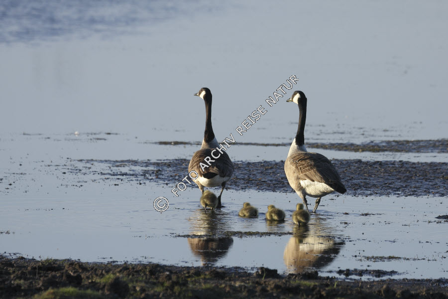 Beijershamnsviken, Beijershamnsviken Naturreservat, Entenvögel, Fauna, Gruppe, Jungtier, Jungvogel, Kanadagans, Branta canadensis, Küken, Mörbylånga, Naturschutzgebiet, Ort, Paar, Schweden, Vogel, Öland,