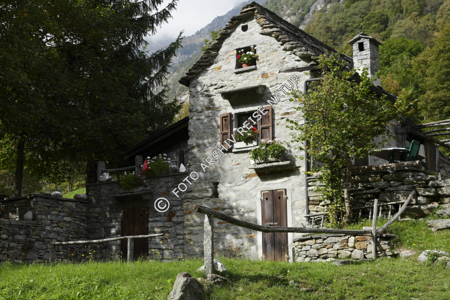Bauwerk, Berghütte, Bergkette, Bergmassiv, Dach, Gebirge, Gebäude, Gebäudeteil, Granitdach, Hütte, Landschaft, Natursteindach, Rustico,