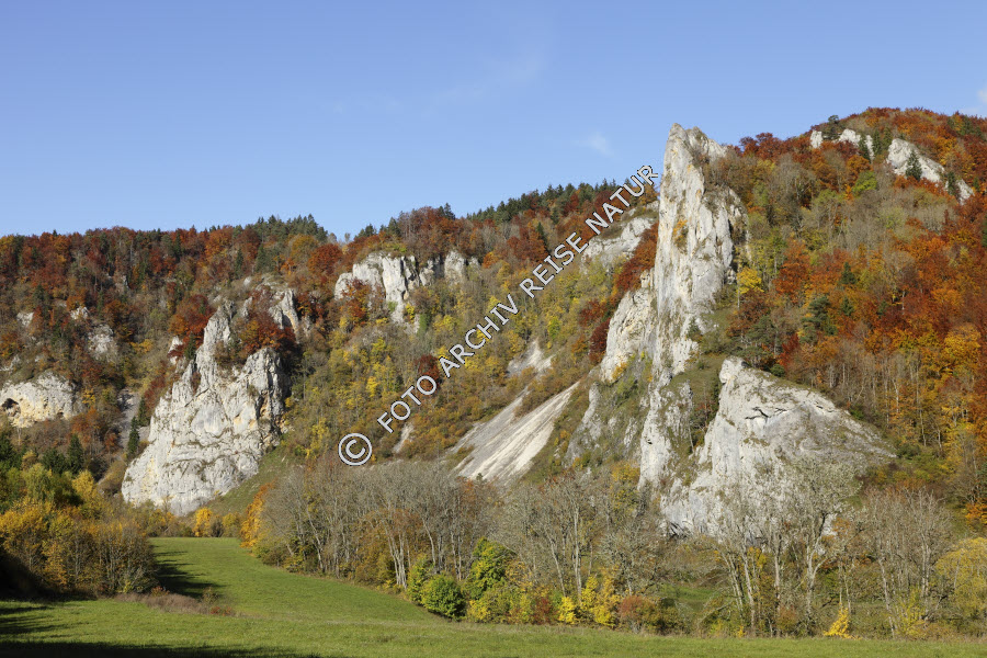 Kalkfelsen im herbstlichen Naturpark Obere Donau