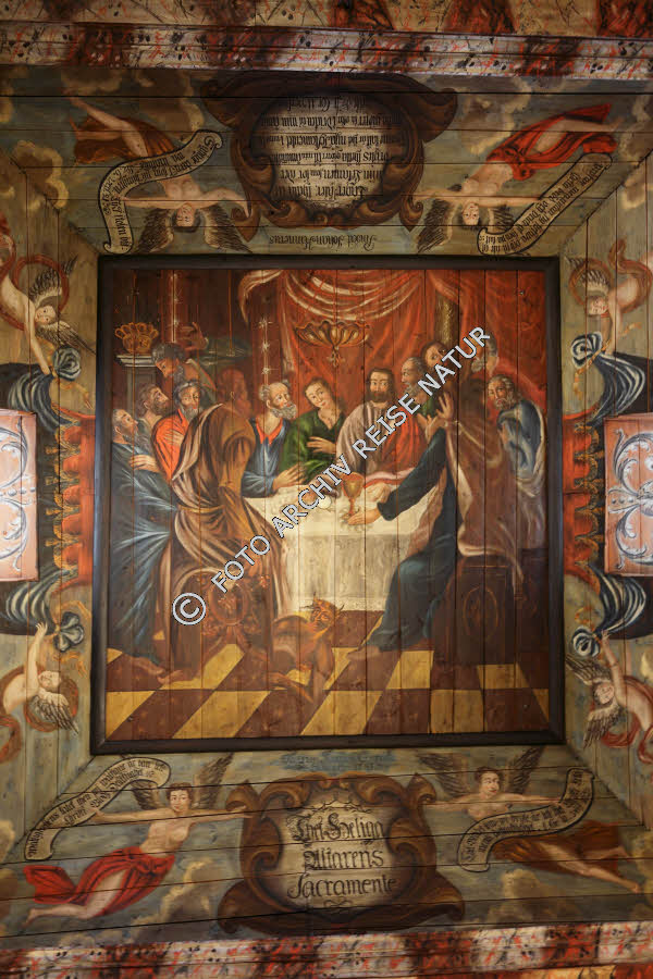 Bauwerk, Deckengemälde, Gebäude, Gemälde, Habo Kyrka, Holzkirche, Jönköping, Kirche, Kirchenschiff, Kultur, Kulturdenkmal, Kulturstätte, Kunst, Sakralbau, Schweden, Småland, historisch,